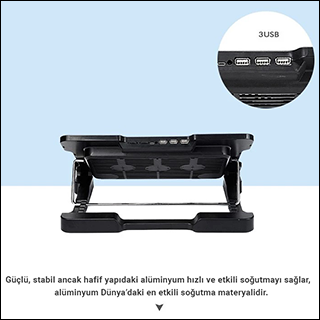 AVANTAJLARI» Kolay Kullanım! Kurulum Gerektirmez » Yüksek Kalite Güçlendirilmiş Alüminyum Alaşım Kasa » Dayanıklı ve Stabil » Ayarlanılabilir Yükseklik » Taşınabilirlik » İki Adet Ekstra Fan ile Soğutma Desteği » 4 Adet Yeni USB Girişi İle Ek Portlar