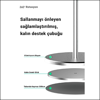 AVANTAJLARI» Kolay Kullanım! Kurulum Gerektirmez » Yüksek Kalite Güçlendirilmiş Alüminyum Alaşım Kasa » Dayanıklı ve Stabil » Ayarlanılabilir Yükseklik » Kayma Önleyici Silikon Pedler » Taşınabilirlik » Manyetik Kavrayıcılar ile Şık, Sade Bir Görünüm