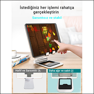 YÜKSEK UYUMLULUK VE KAYMAZ SİLİKONLAR MÜHLEN T5 modeli, daha fazla stabilite sağlamak ve kaymayı önlemek amacıyla üst yüzey ve alt kısımlarda silikon pedler bulunur, bu telefon/tabletlerin güvenli ve dengeli olmasını sağlar. Aynı zamanda cihazınızı çiziklerden korur.